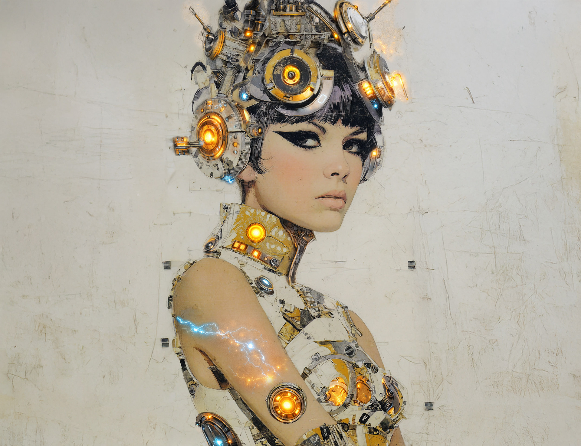 Signature gold mechanical motif and illuminated hardware integration defining the couture system.
