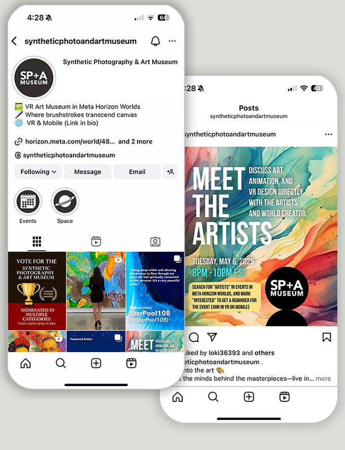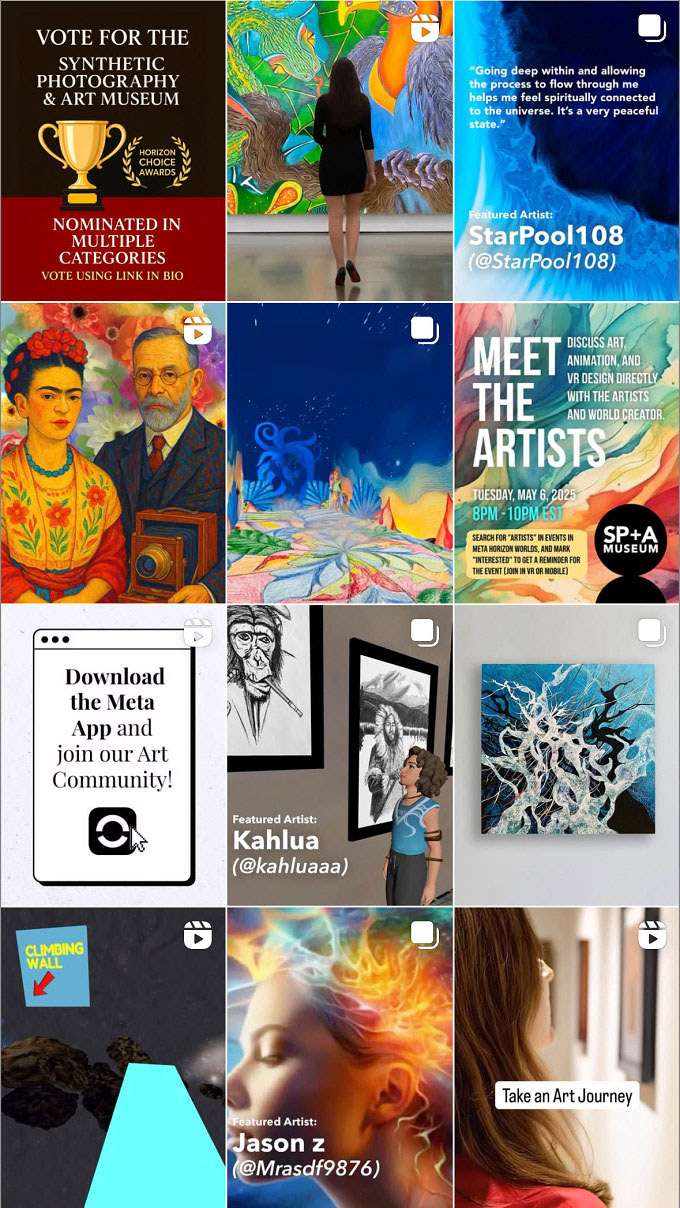 Led visual direction and social media strategy for a multi-artist virtual art platform, developing a cohesive brand identity across exhibition design and digital channels.
